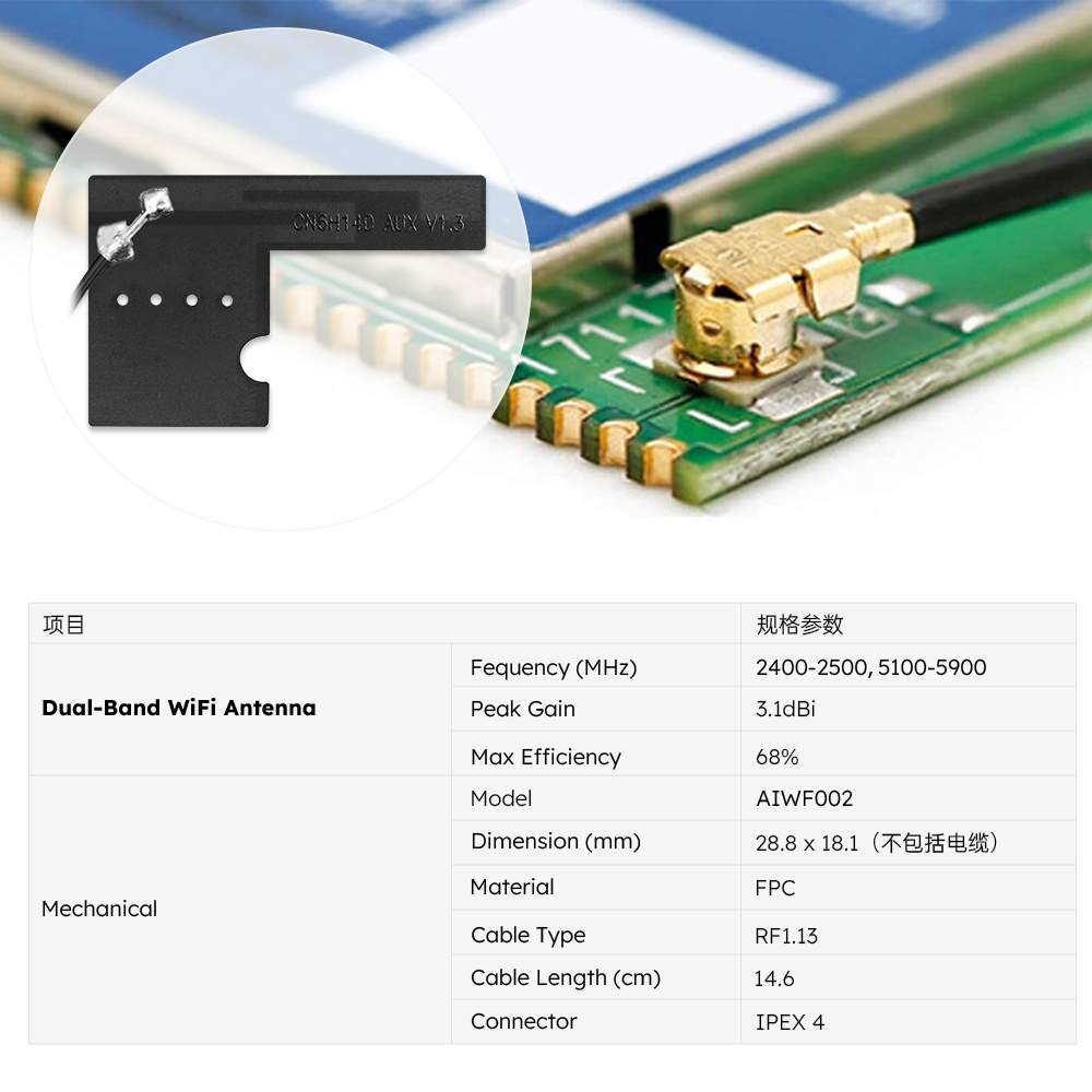 | AIWF002 | 2.4G/5.8G 28.8*18.1mm FPC 嵌入式天线 | M01-0200090R0A | 支持定制 |