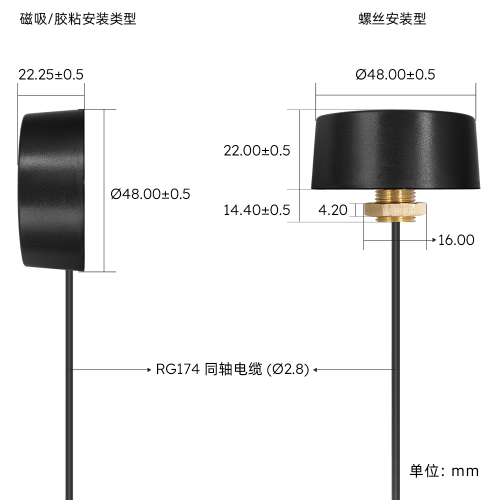 | AEWK002 | 2.4/5.8G机柜天线-1m线长 RG174 磁吸款 | M02-0200160R0A | 支持定制 |