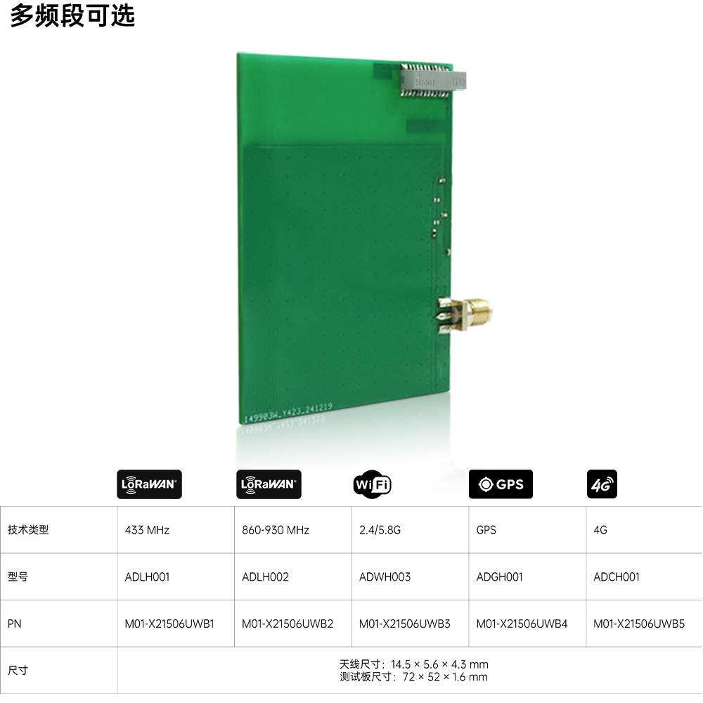 | ADCH001 | H1001 系列 3G/4G LTE SMD 天线 | M01-X21506UWB5 | 支持定制 |