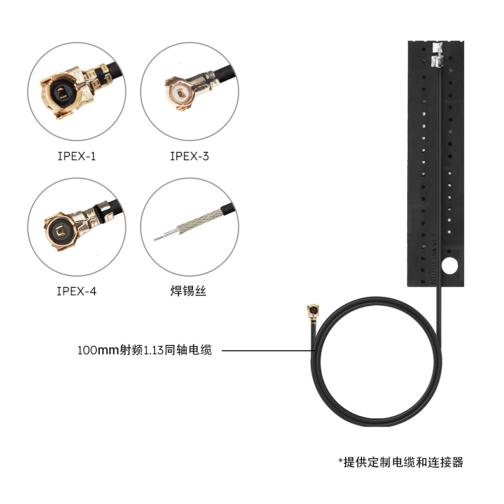 | AIUF002 | 55.5*13.4*0.5mm Φ1.13*100mm(电缆尺寸) IPEX1 黑色天线 | M01-0400810R0A | 支持定制 |