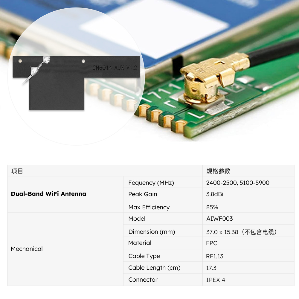 | AIWF003 | 2.4G/5.8G 37.0*15.38mm WiFi FPC 嵌入式天线 | M01-0200110R0A | 支持定制 |