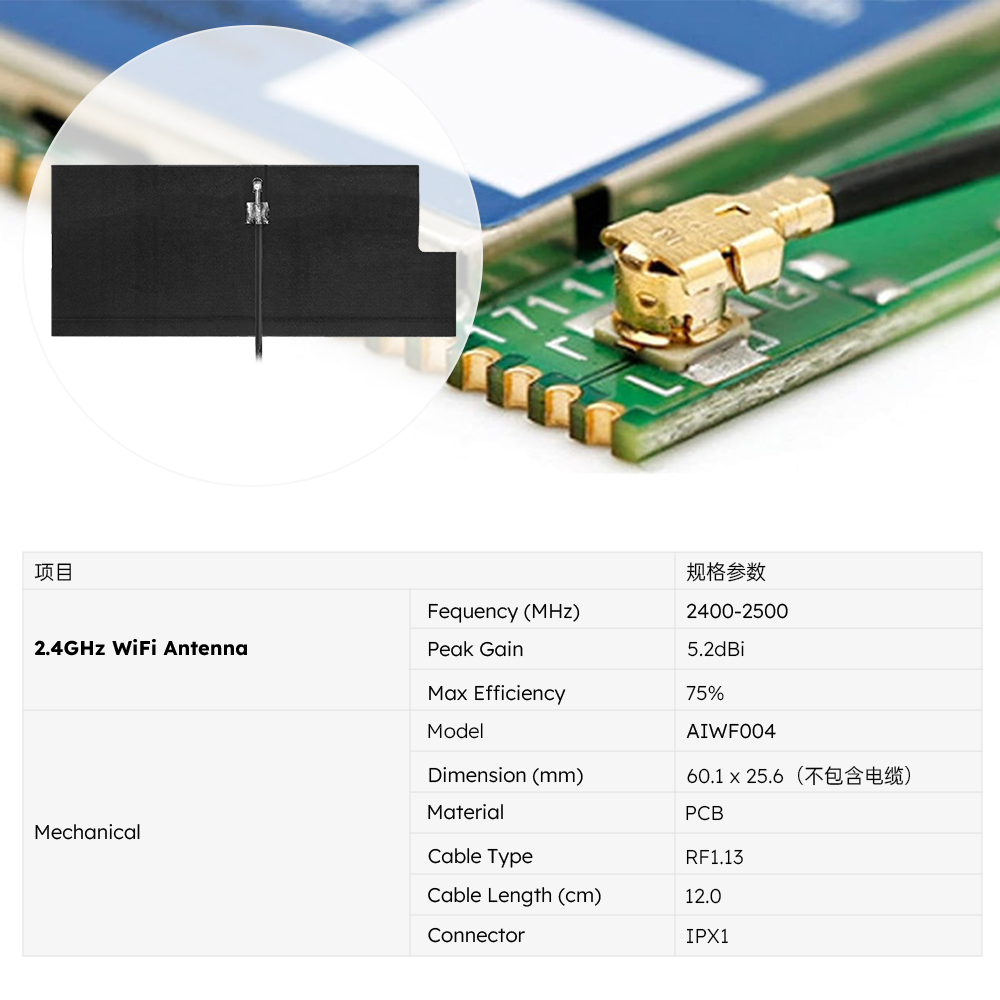 | AIWF017 | 2.4GHz 37.4*17.5mm 2.4G WiFi 嵌入式PCB天线 | M01-0601140R0A | 支持定制 |