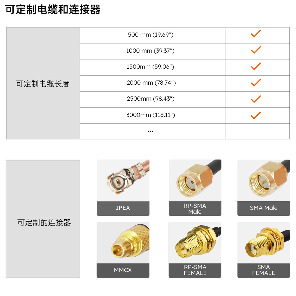 可提供定制电缆和连接器