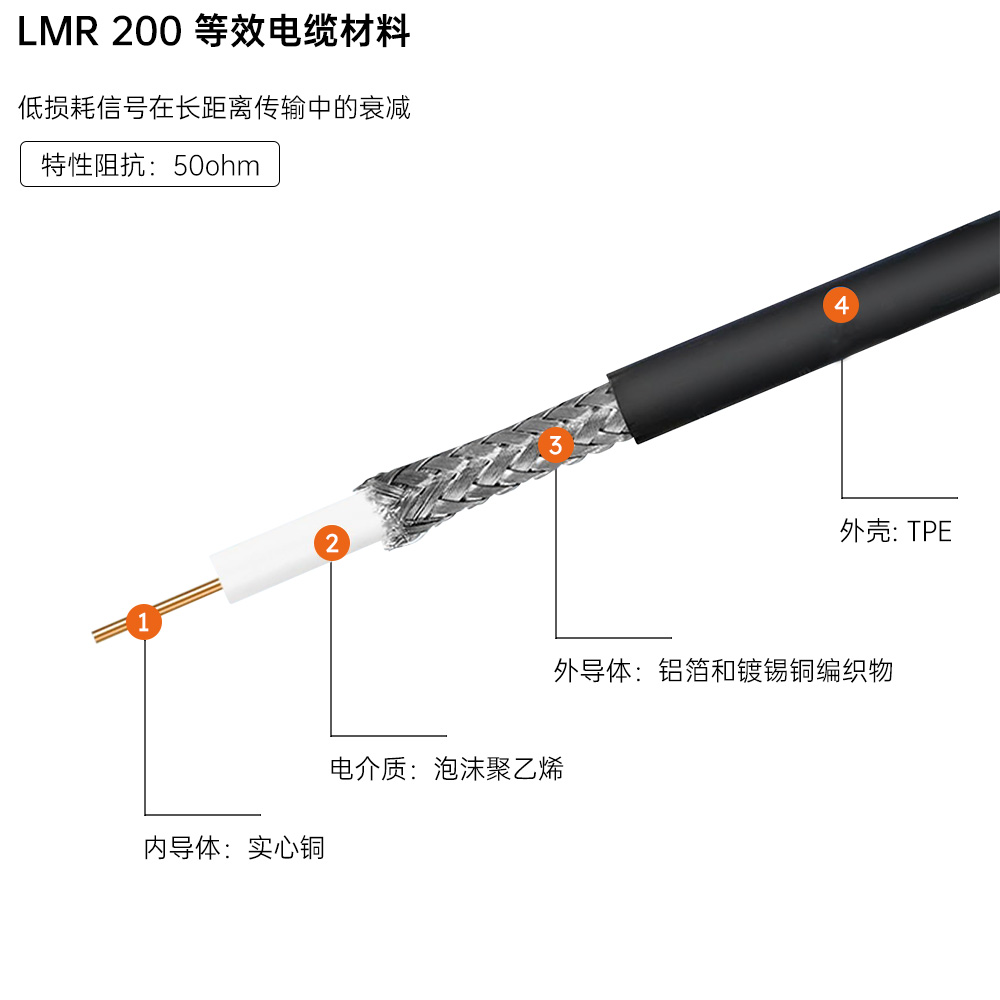 TPE护套超低损耗LMR-200-UF同轴电缆